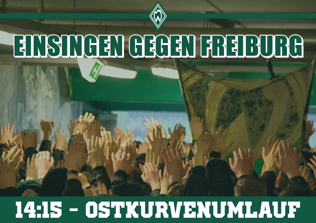 Vor dem Heimspiel gegen den SC Freiburg findet ab 14:15h wieder das Einsingen im Ostkurvenumlauf statt. Lasst uns danach geschlossen in unsere Kurve gehen und gemeinsam die drei Punkte holen!